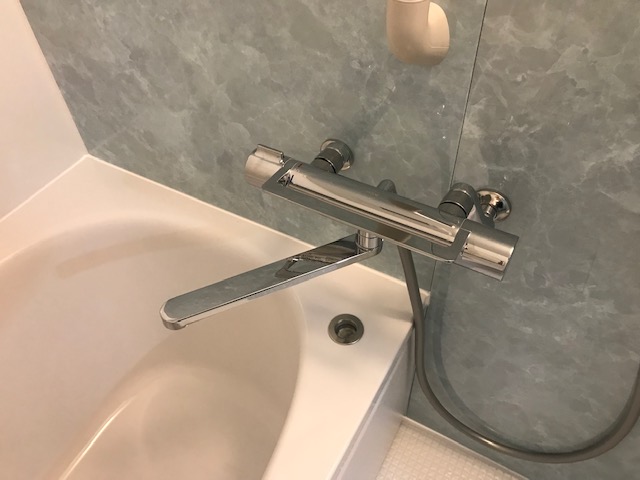 サーモスタット水栓で温度調節が簡単になりました。