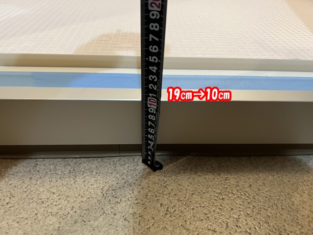 | 浴槽の高さは53㎝→42㎝になりました。 | 入り口の段差は19㎝→10㎝まで低くなりました。 |