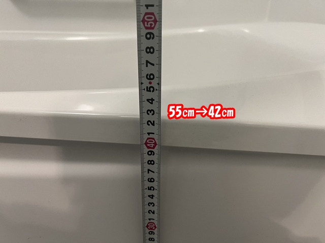 | 三乾王:換気扇・暖房・乾燥機の3つの役割をこなしてくれるとっても便利な換気扇です。 | 浴槽の高さは42㎝まで低くなり安心ですね。 |