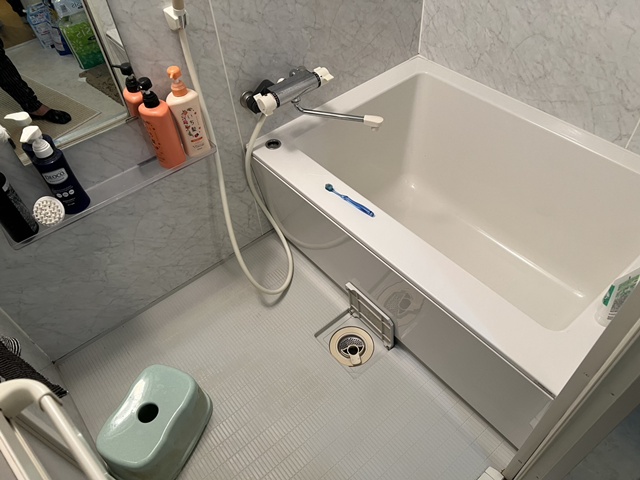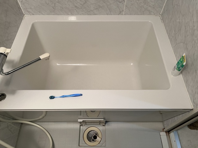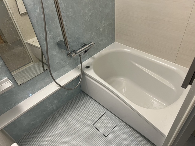 リフォーム後の浴槽はラウンド浴槽で高い節水効果を持ちながら肩まわりゆったりの入浴感を両立できます。 |