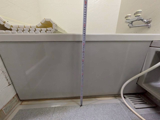 | 浴室入り口の段差は17㎝→5㎝まで低くなりました。 | 浴槽の高さも56㎝→42㎝になりました。 |