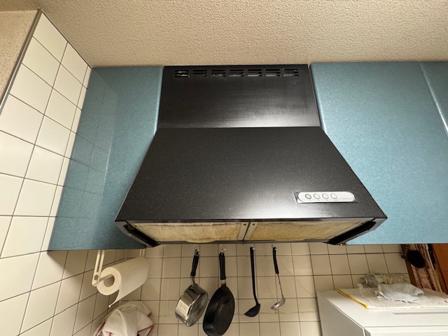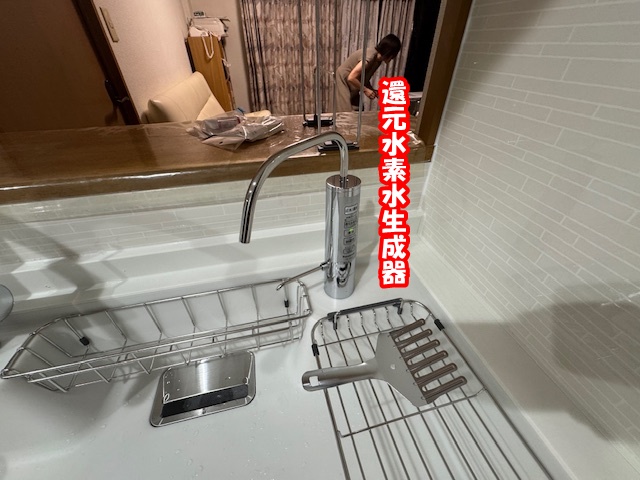 還元水素水生成器は本体はシンク下に置けるビルトインタイプでスッキリ。水は用途に合わせて5つの水が選べます。 | レンジフードはサイズアップする事で壁からピッタリになりスリムタイプでスッキリですね。 |