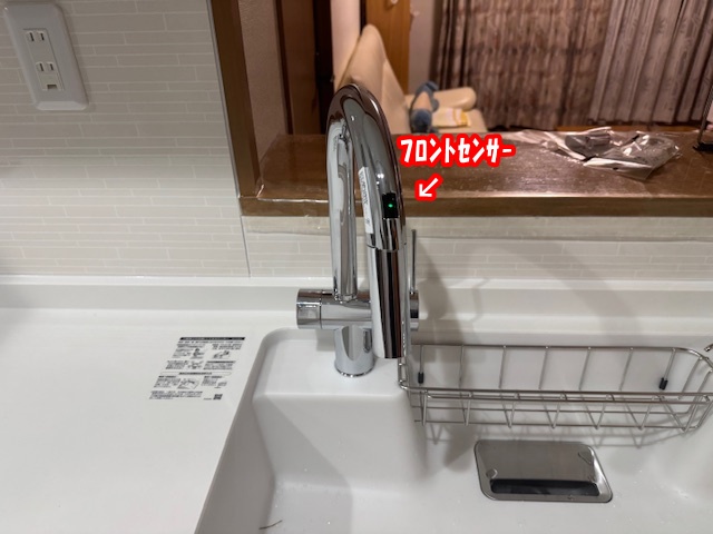 キッチン水栓はフロントセンサー付きの商品を選ばれました。手が汚れている時などは、とっても便利ですね。 |