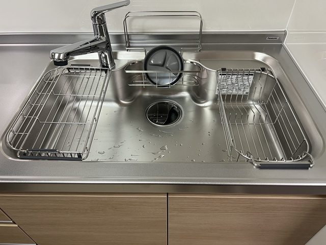 シンクは静音シンクで洗剤バスケット・水切りバスケット も付いているので便利ですね。 |