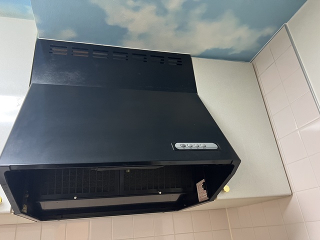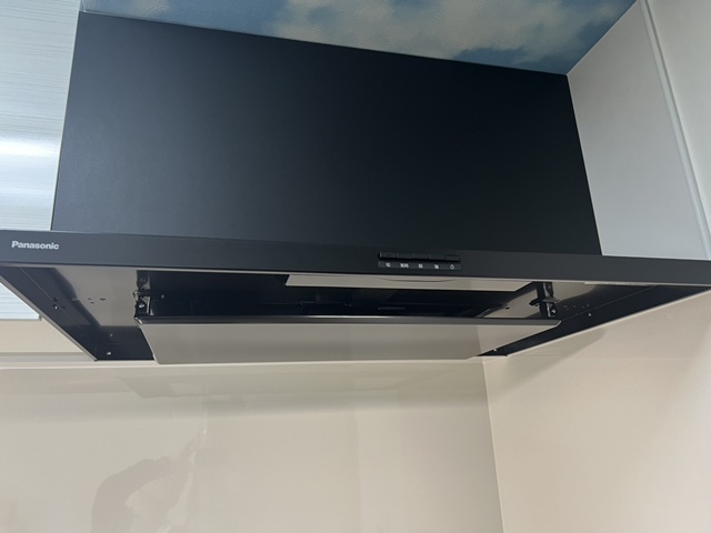 | ガスコックを撤去したので調理スペースが広くつかえますね。 | レンジフードはサイズアップする事で壁からピッタリになりスッキリですね。 |