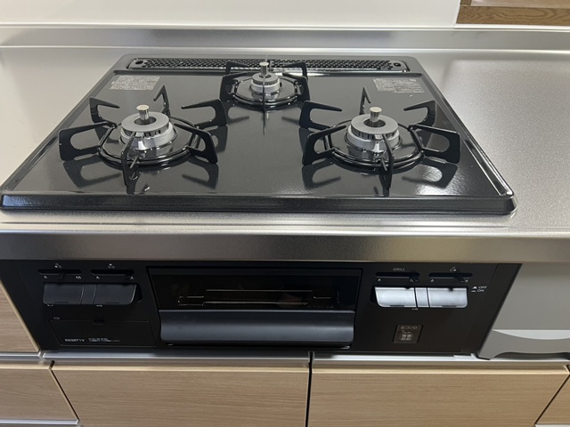 | レンジフードはスリムタイプになりました。 | ガスコンロはホーロートップ・片面焼きグリルでお手入れが楽々ですね。 |