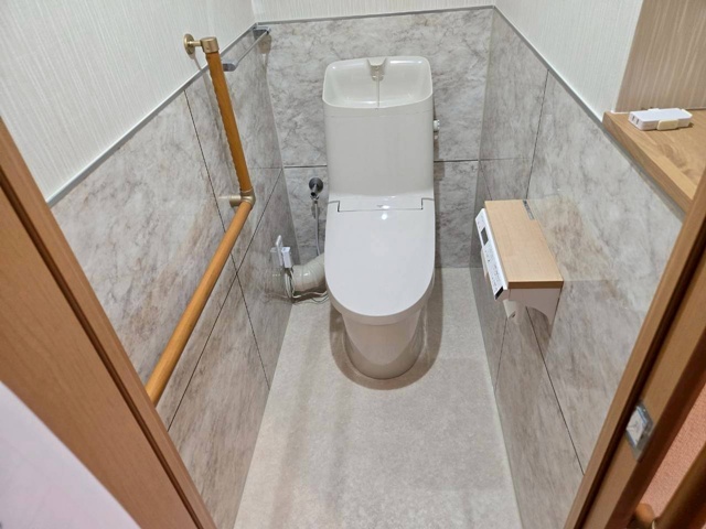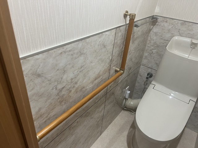 | 手すりは元々使用していたものを現状使用致しました。 | インテリアリモコンは色々な機能が付いていて時計も付いています。 |