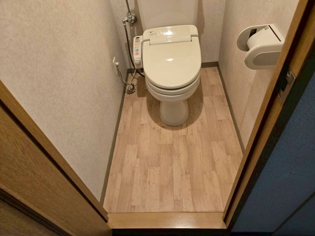 | 工事前のトイレです流すのはレバー式のみでした。 | 天井部分です。 | 床部分です。 |