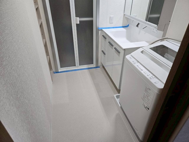 天井・カベのクロスを張り替えたので洗面所がとっても 明るくなりましたね!! |