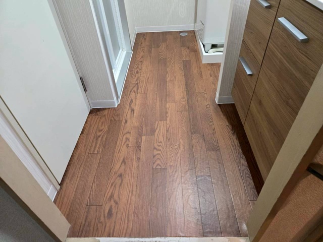 | 床のクッションフロアーはサンゲツHM12130フローリング調です。リフォーム前とはイメージが変わりましたね。 |