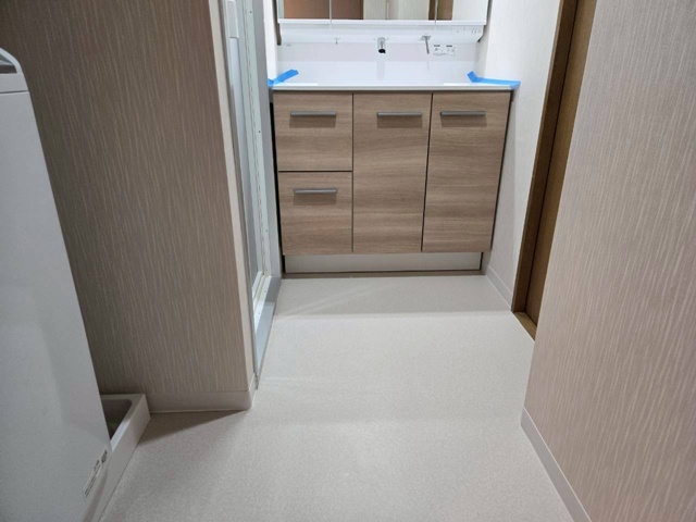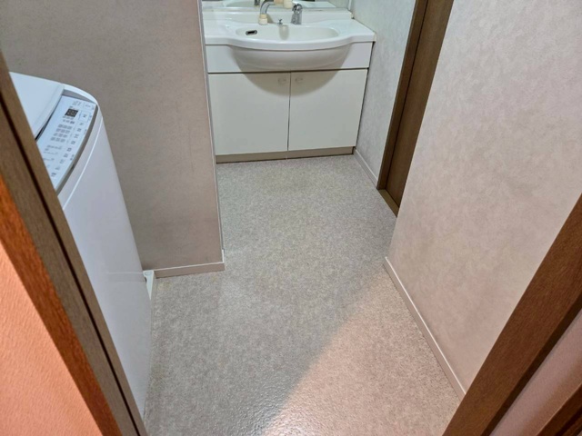 床のクッションフロアーは、お客様に選んでいただき サンゲツHM12147に張替え致しました。 |