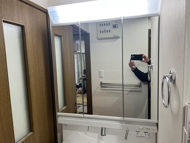 ミラーキャビネットも棚が自由に動かすことが出来て とっても便利になっています。 |