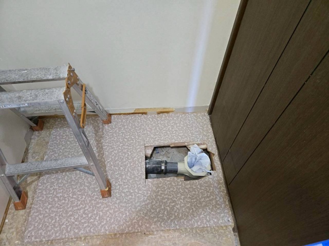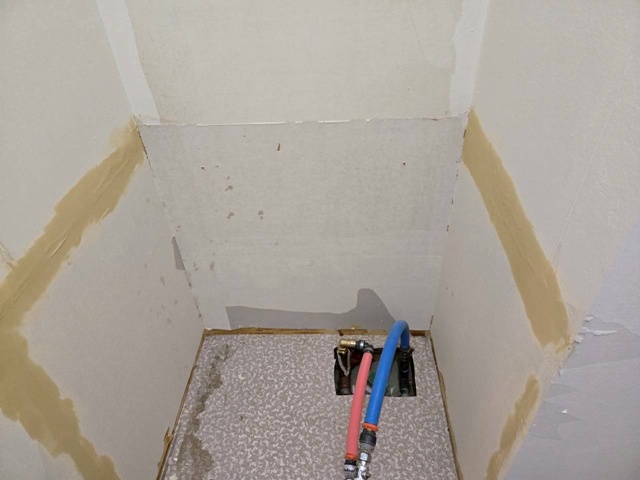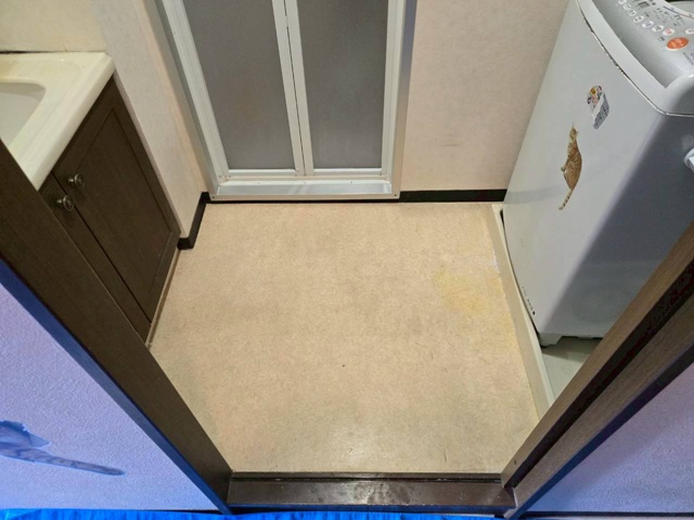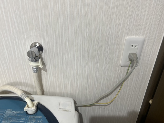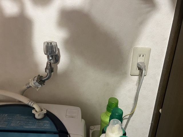 | 床のクッションフロアーはサンゲツHM-12033でお客様に選んで頂きました。 | 洗濯給水栓はハンドル式からワンタッチ開閉になったのでクルクル回さず開閉出来ますね。 |