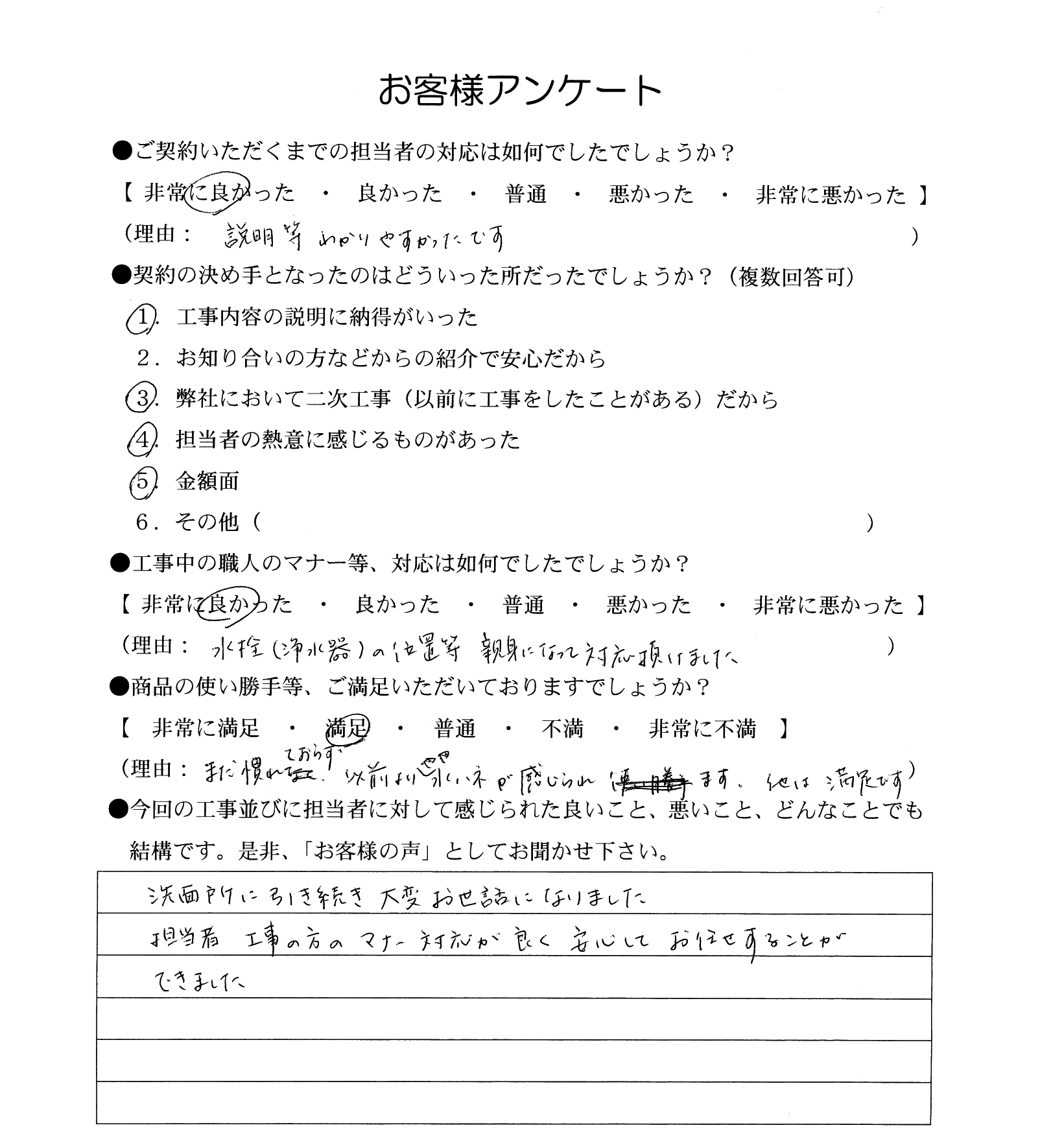 (理由:水栓(浄水器)の位置等親身になって対応頂けました)