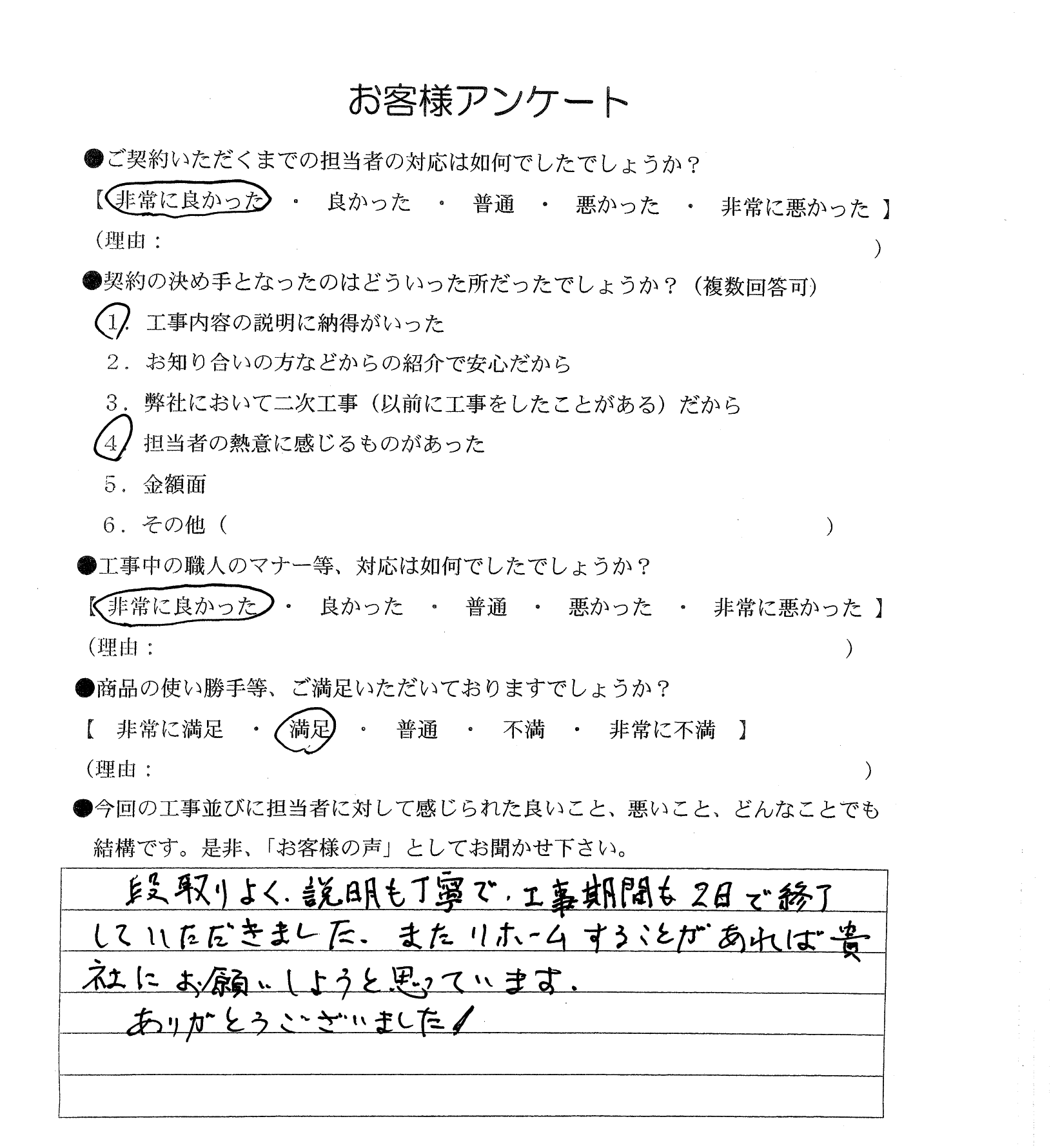 またリホームすることがあれば貴社にお願いしようと思っています。