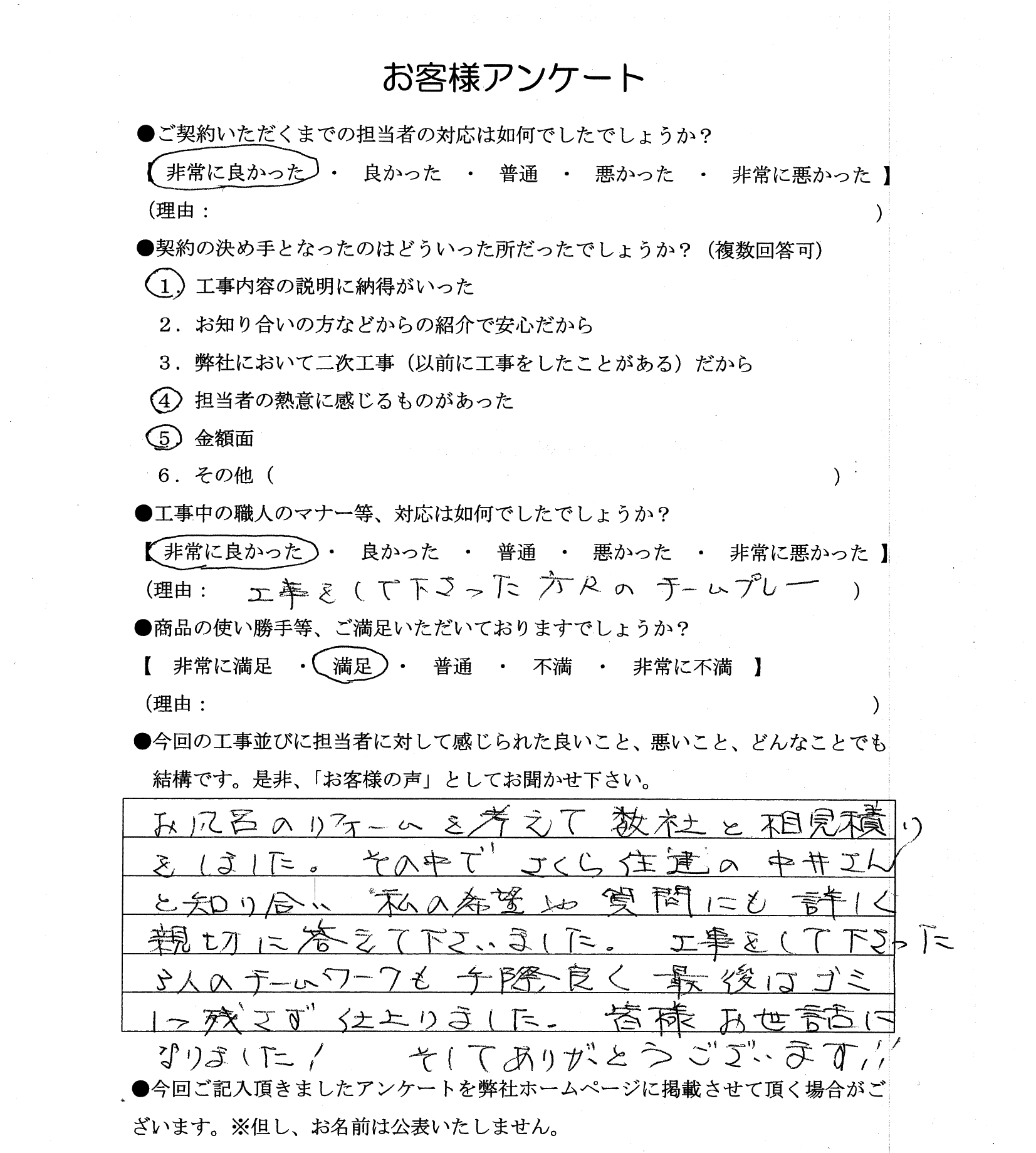 しました。その中でさくら住建の中井さんと知り合い 私の希望や質問にも詳しく親切に答えて下さいました。