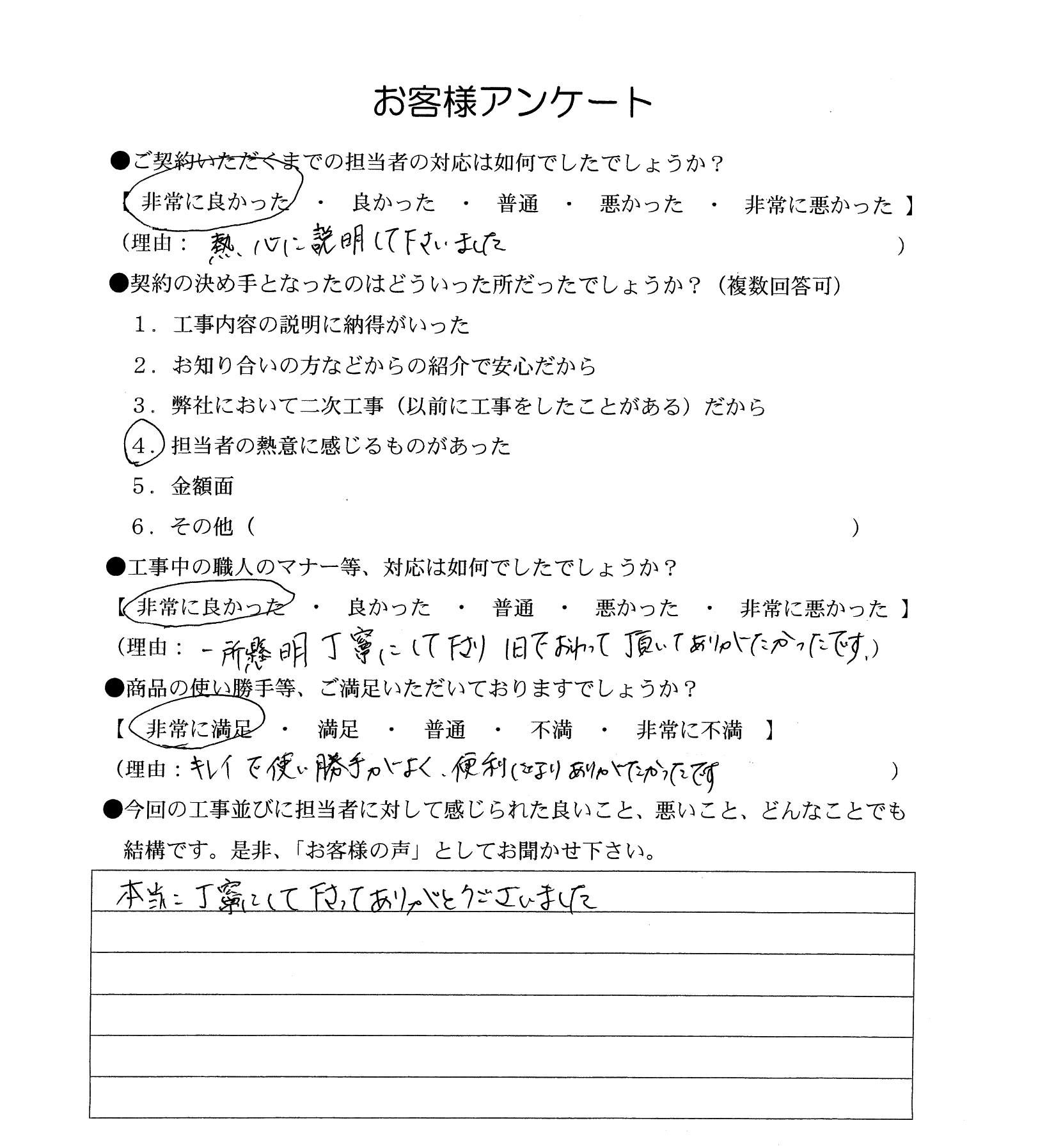 | (理由:キレイで使い勝手がよく、便利になりありがたかったです。) |