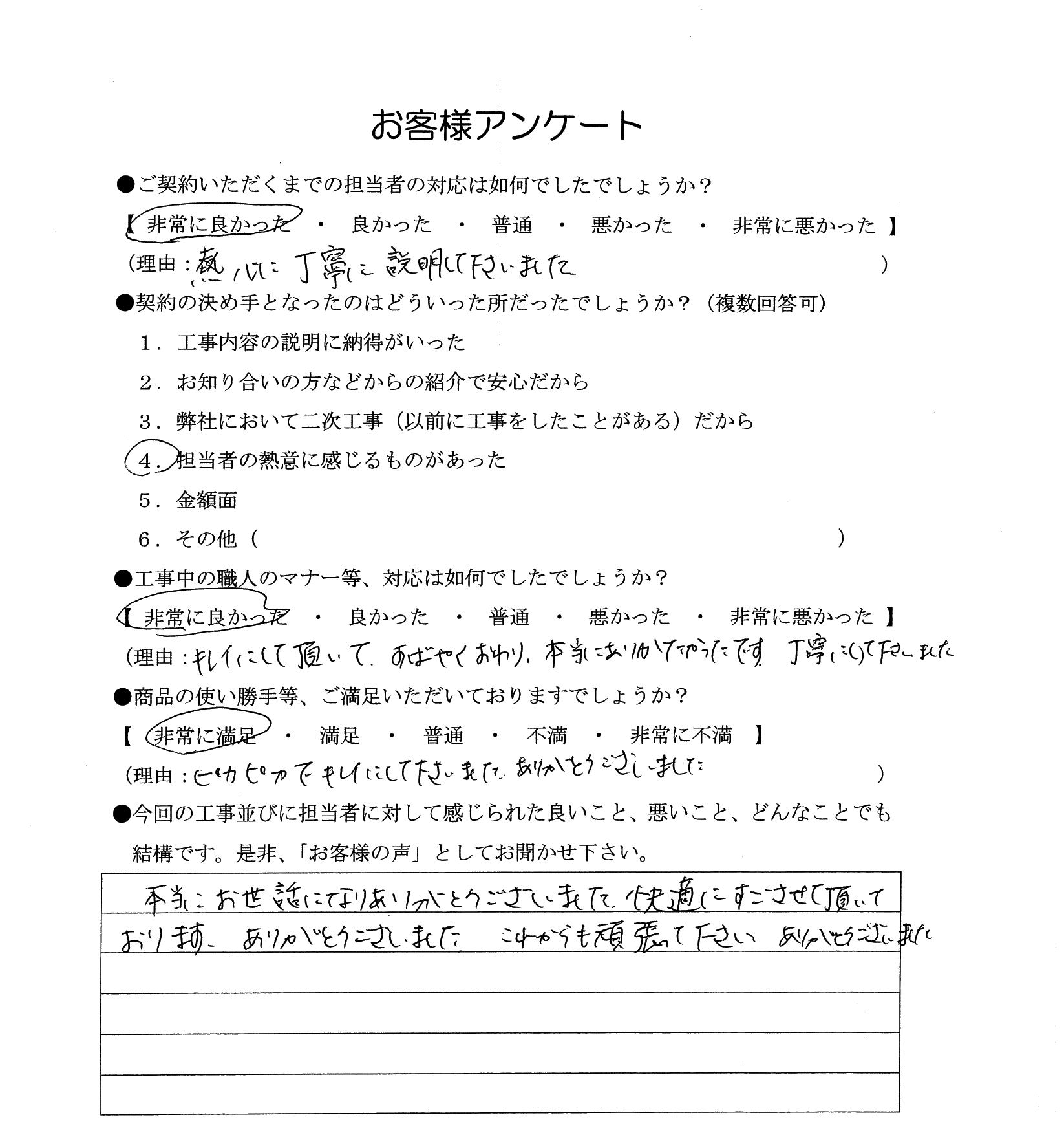 | (理由:キレイにして頂いて、すばやくおわり、本当にありがたかったです。丁寧にして下さいました。) |