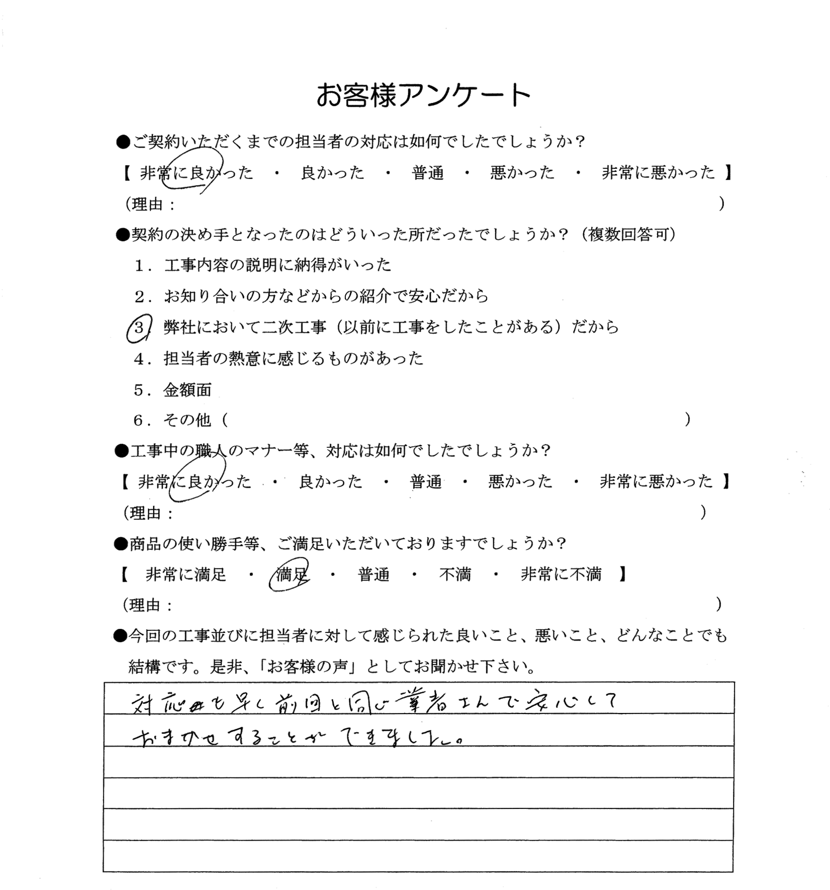 3.弊社において二次工事(以前に工事をしたことがある)だから