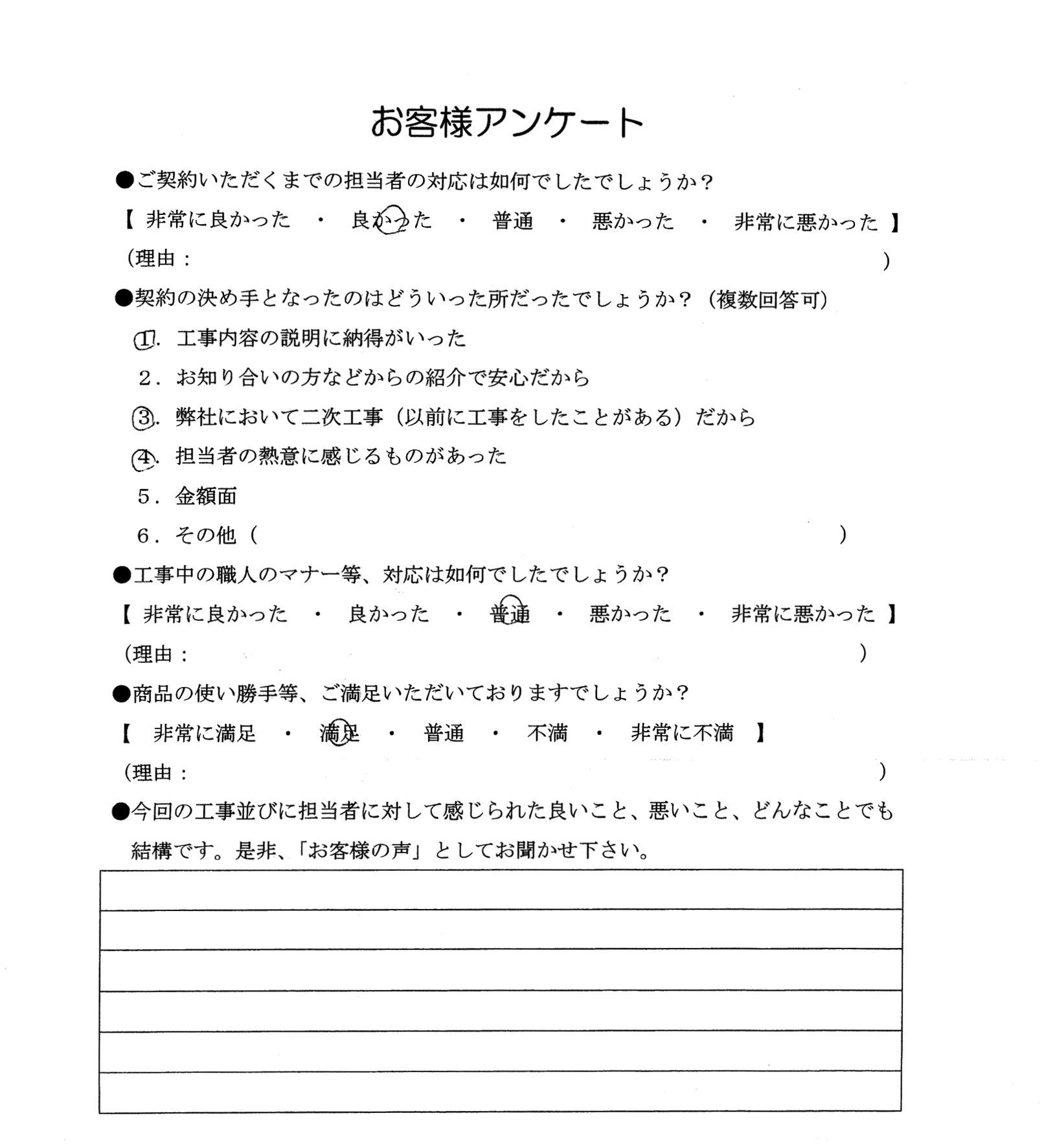 F様、前回に引き続き工事のご依頼ありがとうございました。また何かございましたらお気軽にお問い合わせお待ちしております。