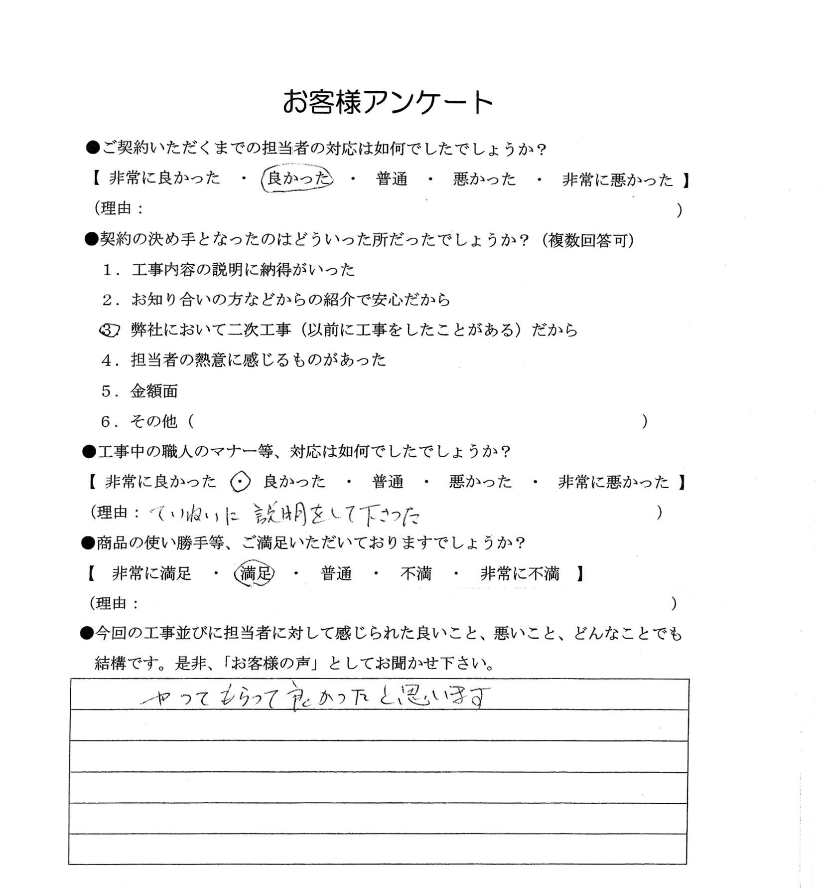 1.工事内容の説明に納得がいった